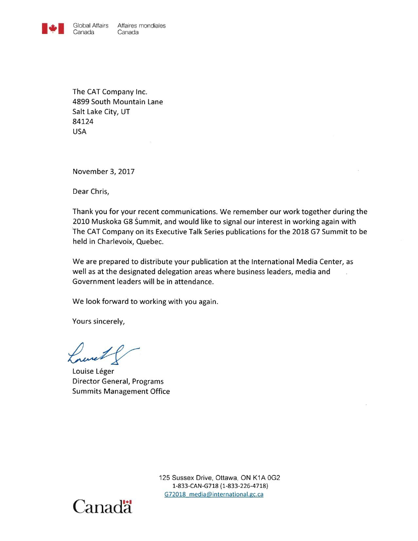 The G7-B7 Summit, with their increasing agenda topics, have allowed The CAT Company to take our Executive Talk Series to another level by delivering a number of bespoke G7-B7 publications specially targeting the most important agenda topics and allowing one to six companies only to be part of one G7-B7 publication.